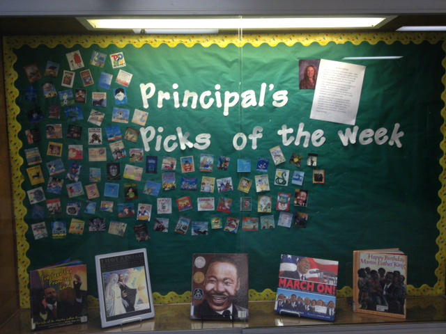As of today, I am over half way through my 180 Book A Day Challenge that began back in August. I pledged to read one elementary level book for each day school is in session, based on our school’s theme this year:  “Today a Reader, Tomorrow a Leader.”   Born from that challenge I have been promoting the books I read on the morning announcements.  I have somewhat slacked from that job as of late, but with the new semester, I am pledging to get back to my regular appearances.  I have been keeping track of my books by printing small images of each book I read and posting them on a bulletin board titled, “Principal’s Picks of the Week” in our main hallway.  The five books I am reading that week or the previous week are also displayed for all of the students to see.